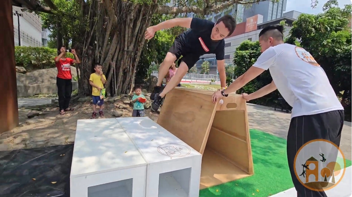 2025 年五月,移動識界團隊來到桃園的「舊市凹逗 JUST OUTDOOR」活動,團隊設計了一系列由淺入深、適合各年齡層與初學者的跑酷體驗關卡。 在為期兩天的活動中,我們想讓大眾感受到跑酷原來這麼平易近人!